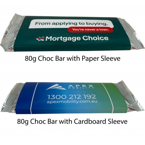 80g Couverture Milk Choc Bar (Australian Made) with Full Colour Sleeve